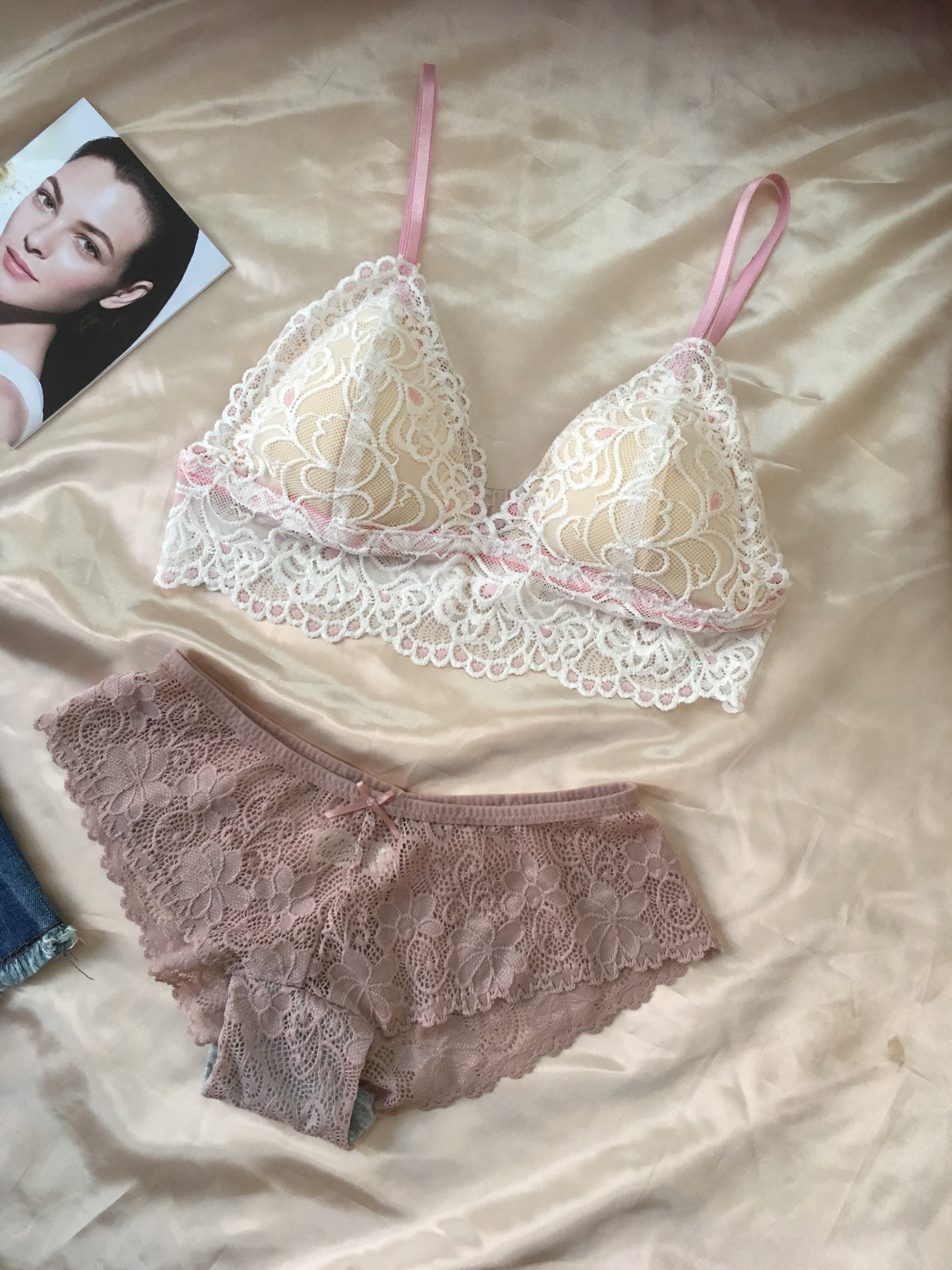 レースが繊細でありながら夏らしいセットは大人のバカンスにぴったり。もちろんブラレットがシックな色合いですので普段使いで見せブラにしてもステキです。