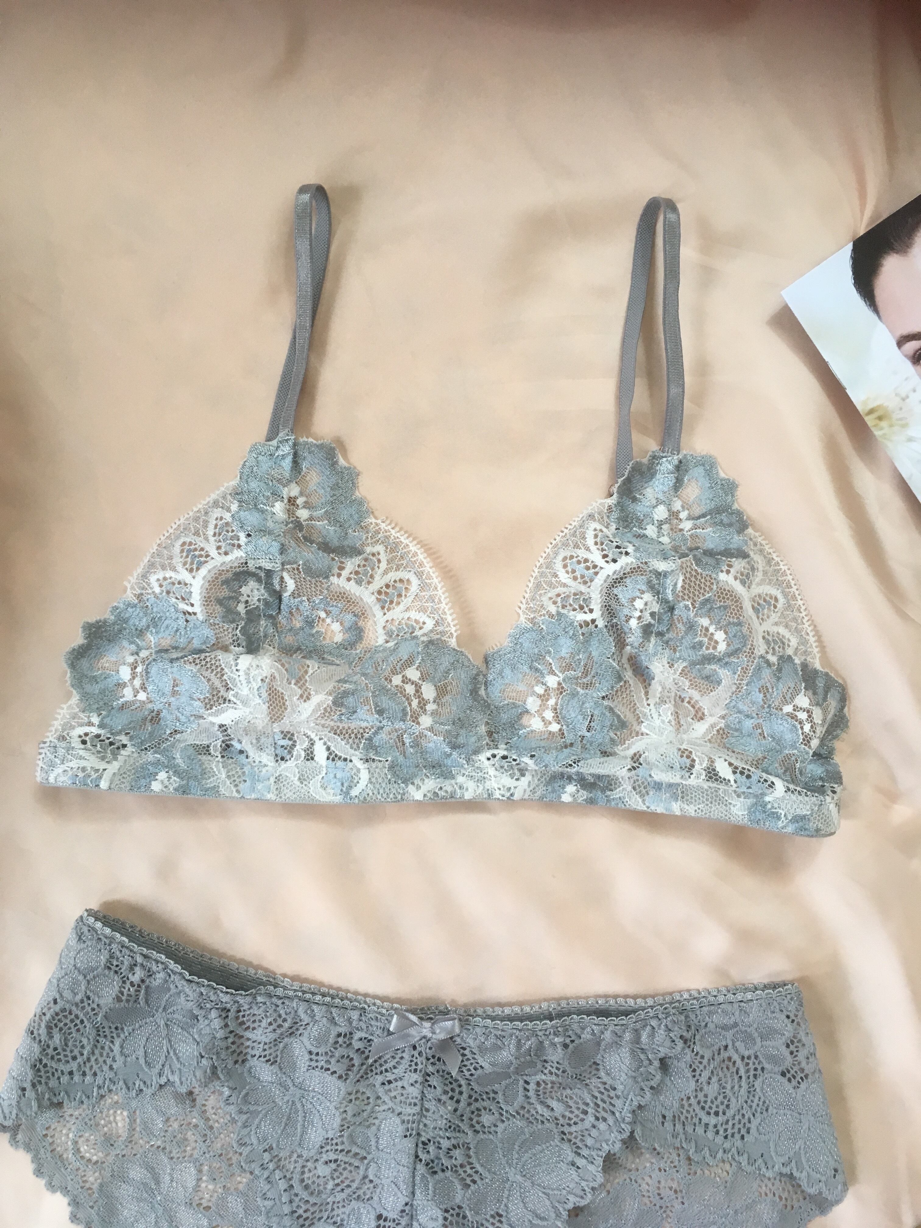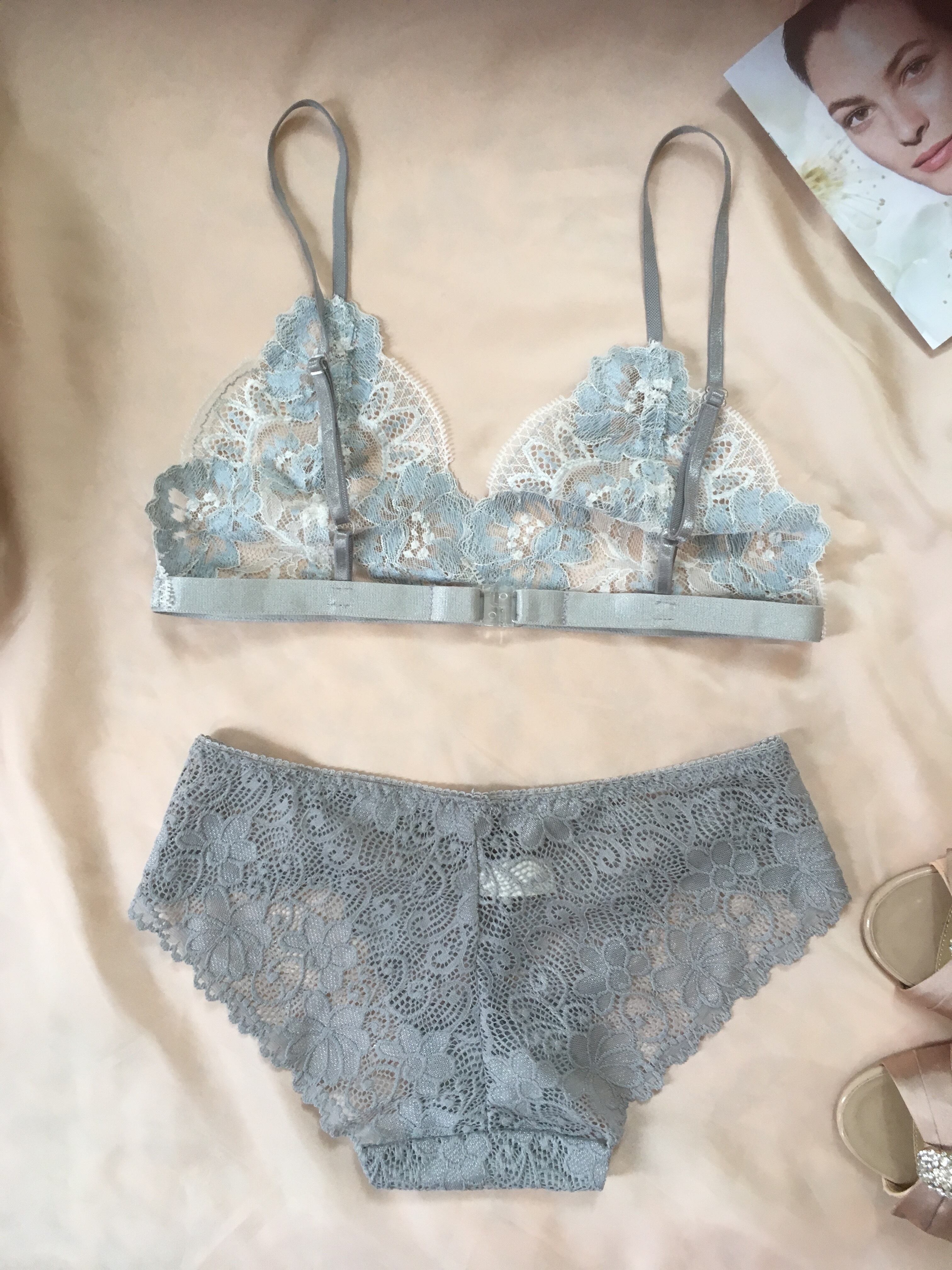 透け感の可愛いお花柄のショーツがコーデを引き締めてくれます。 ◯silverの光沢感のある細い肩紐は、調節可能です。