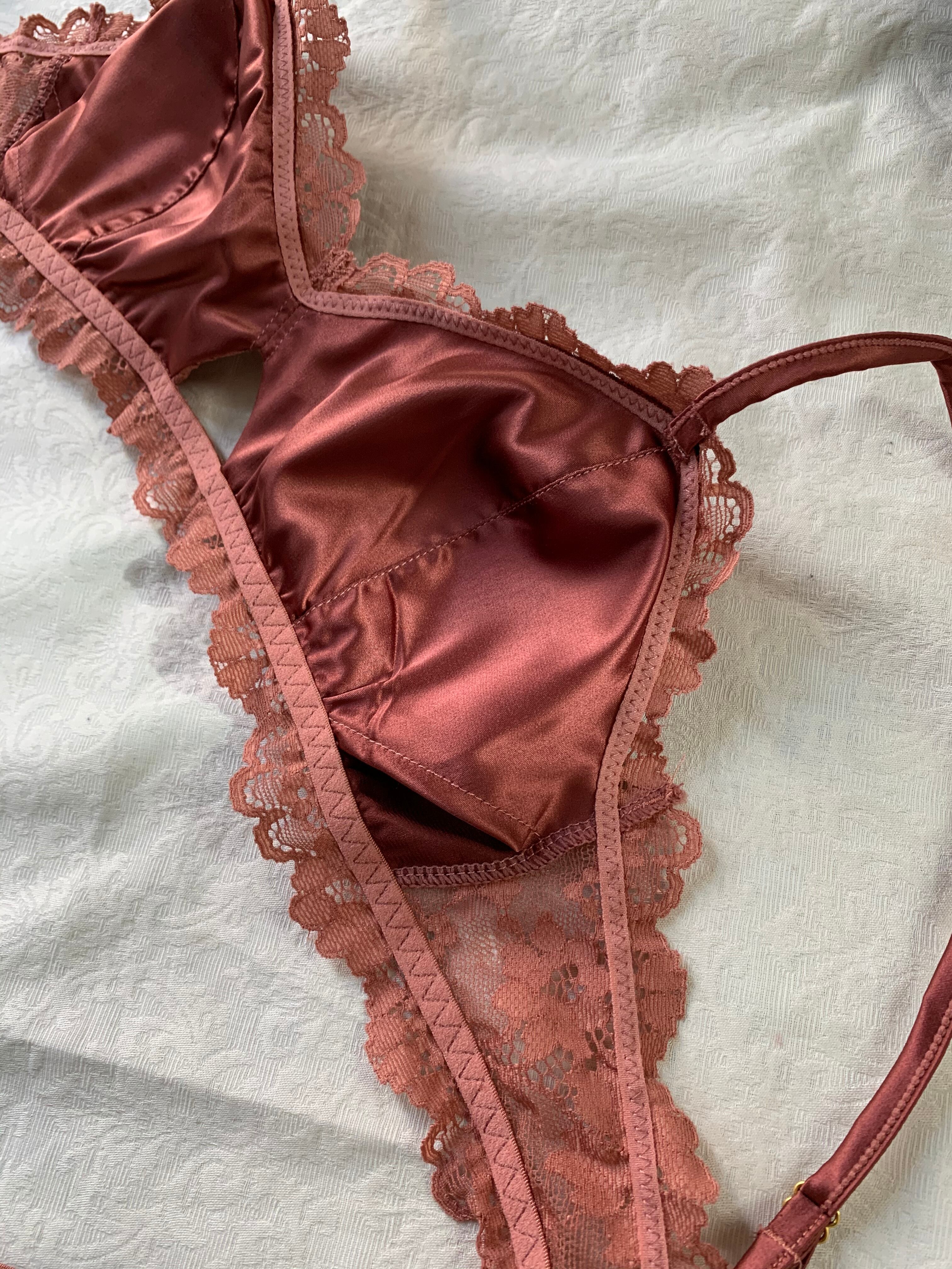 ストラップ部分のサテンとゴールド素材のストラップがかわいい